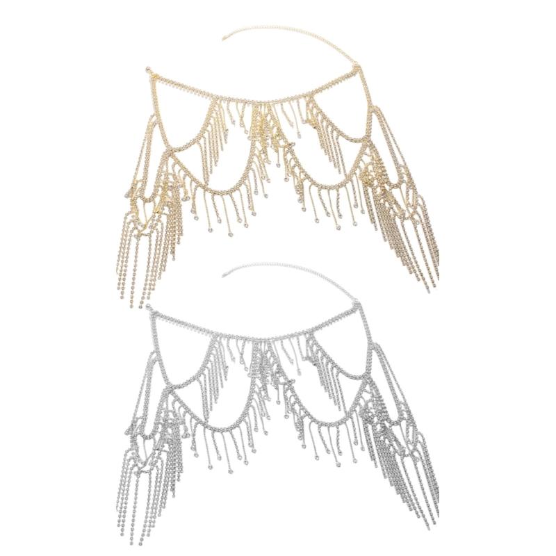 Verschönert Ihren Look mit dieser mehrlagigen Fransen-Schulternkette mit kaskadierenden Kristall-Strasssteinen, die entworfen wurde, um jedem Outfit dynamische Bewegung und funkelndes Glitzern zu verleihen.