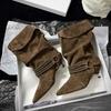Damen Herbst- und Wintermode Hochwertiges Wildleder Damen Kurze Stiefel Spitz Hohe Absätze Stiefeletten