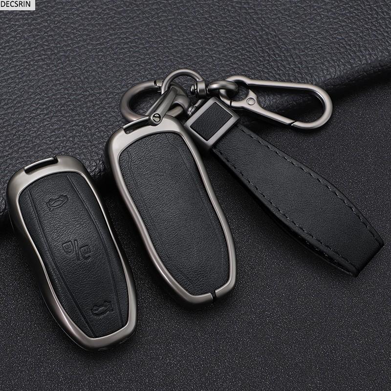 Zinc Alloy+ Leather Car Smart Key Cover Case Shell Fob for Tesla Model 3 Model Y S Key Shell Bag Holder Protector Accessorie