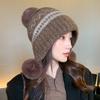 Herbst Winter Pelzig Warm Lässig Vielseitiger Stil Winddicht Ohrenschutz Bommel Dekoration Strickmütze Bequem Gemütlich Trendig