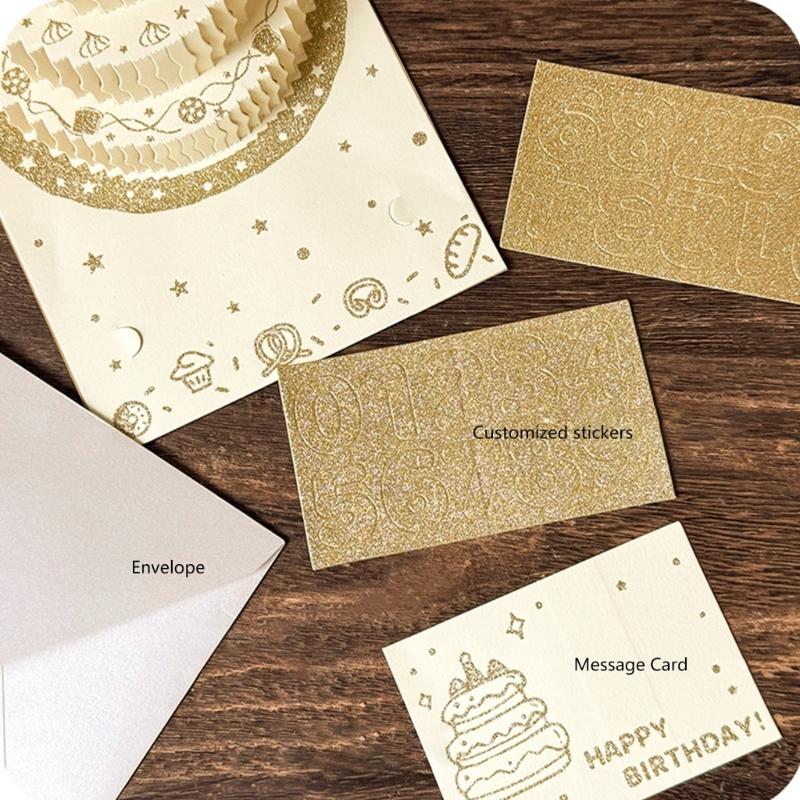 This 3D birthday greeting card features 3D cake designs, offering unique and eye catching way to deliver warmful messages with its innovative layered structure.