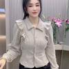 Lotus Leaf Edge Polo Collar Long-sleeved Shirt Women's Autumn and Winter New Temperament Casual Top
