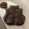 PU Leather No-wash Stand-up Collar Vest for Women Autumn and Winter Style Short Loose Cotton Back