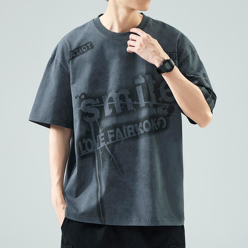 Sommer und Sommer Amerikanisches Hochdichtes Gestricktes Lockeres Mode Herren T-Shirt Kurzärmelig