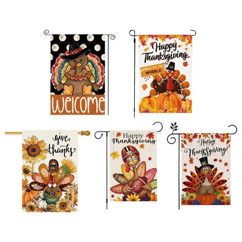 Thanksgiving Sports Turkey Double-Sided Garden Flag 45x30cm/18x12in Fall Outdoor Yard Display