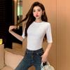 Koreanisches Damen-Basisshirt in Slim-Fit-Passform, neues Kurzarm-T-Shirt mit kleinem Rundhalsausschnitt und halblangen Ärmeln, schlankes Oberteil aus reiner Baumwolle
