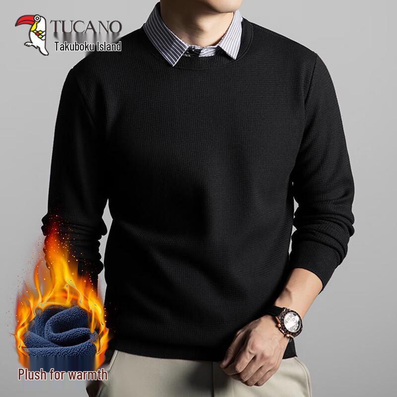 Stay warm and stylish this winter with the TUCANO Men's Faux Two-Piece Thermal Sweater. Featuring a soft plush lining and thickened knit construction, this pullover is designed for ultimate warmth in temperatures from -10°C to 5°C. Its clever faux two-piece design offers a smart layered look without the bulk. Versatile and comfortable, it's perfect for daily wear or casual outings, suitable for both young and middle-aged men.