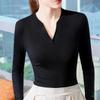 Unterteil Damenmode Altersreduzierend Ausländischer Stil V-Ausschnitt Oberteil Einfarbig Dünnes T-Shirt Langärmliges Innenhemd