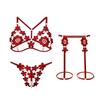 3 Piece Erotic Costumes Pearl Embroidered Open Bra Thong Garter Set Sexy Lingerie Set For Women See-Through Porn Fancy Underwear