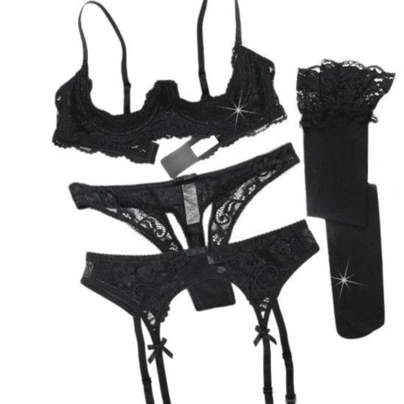 Sexy Lingerie Sets Black Lace Crotchless Bra G-String Set 5-Piece Erotic Costumes Cutout Bra Open Cup Bra Hollow Out Underwear