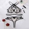 2 Pcs Lingeries Set Sexy Black Patchwork Mesh See Through Hanging Neck Push Up Corset Bra And Thong Bilizna Erotic Costumes
