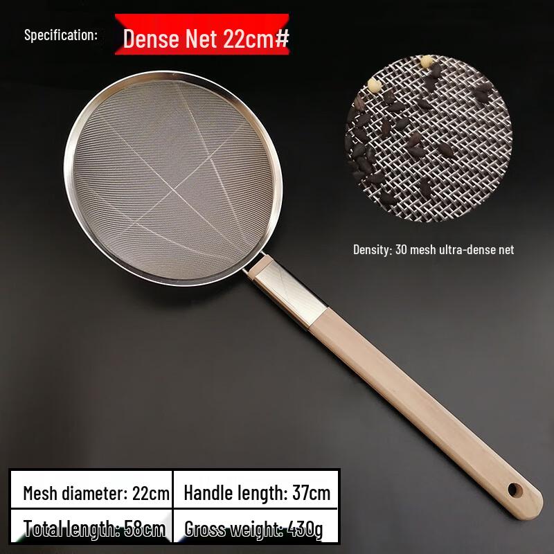 Edelstahl Feinmaschiges Sieb Schöpflöffel, 22cm mit Holzgriff