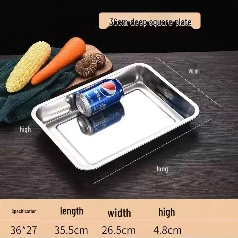 Tiefer rechteckiger Serviertablett aus Edelstahl