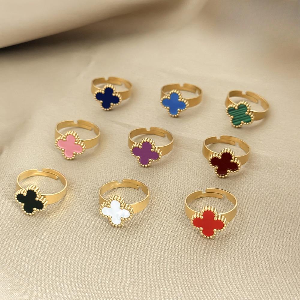 13mm Vierblättriger Kleeblattring 18K Vakuumbeschichtet Verstellbares Offenes Design Damenring