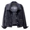 Damenjacke Umlegekragen Langarm Einreihig Einfarbig Knöpfe Stickerei Taschen Kurzer Denim Hip Hop Streetwear Lady Coat
