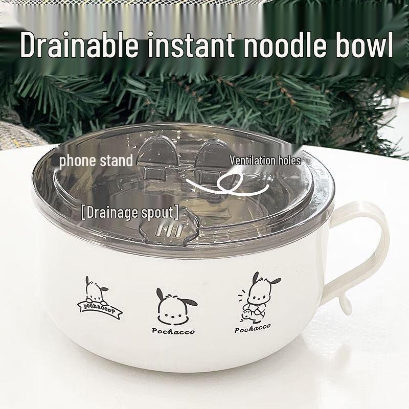 ZISIZ 1000ml Stainless Steel Instant Noodle Bowl with Lid