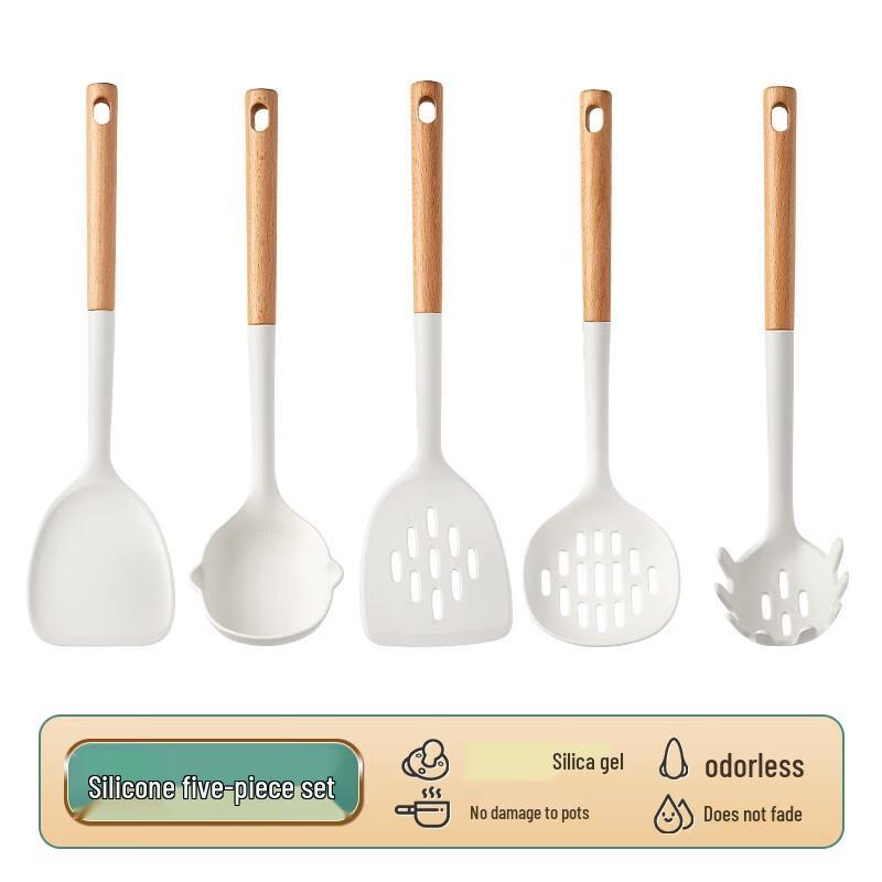 ZISIZ 5-teiliges Küchenutensilien-Set aus Silikon und Holz