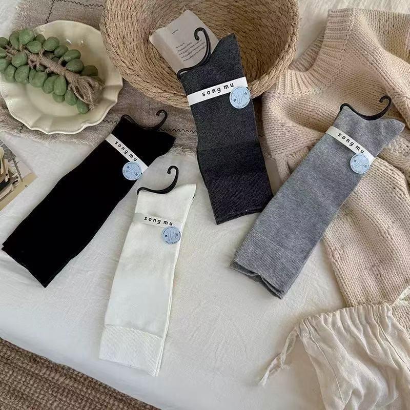 Druck Wadenstrümpfe ohne Fuß für Herbst und Winter, Graue vielseitige schlankmachende Oberschenkelhohe Strümpfe, Baumwollsocken