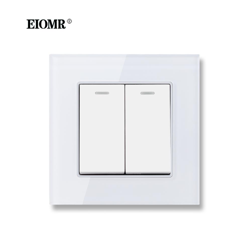 EIOMR EU/UK Standard Lichtschalter 16A 250V 2-fach 1-Wege / 2-Wege Wippschalter Großes Panel Luxus Wandtaster Unterputzschalter