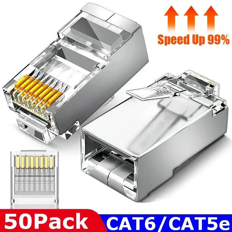 50/100 Stück Cat6 Cat5e RJ45 Geschirmter Stecker Modulare Stecker Kabel Netzwerkstecker Vergoldete Ethernet PC Hardware Kabeladapter