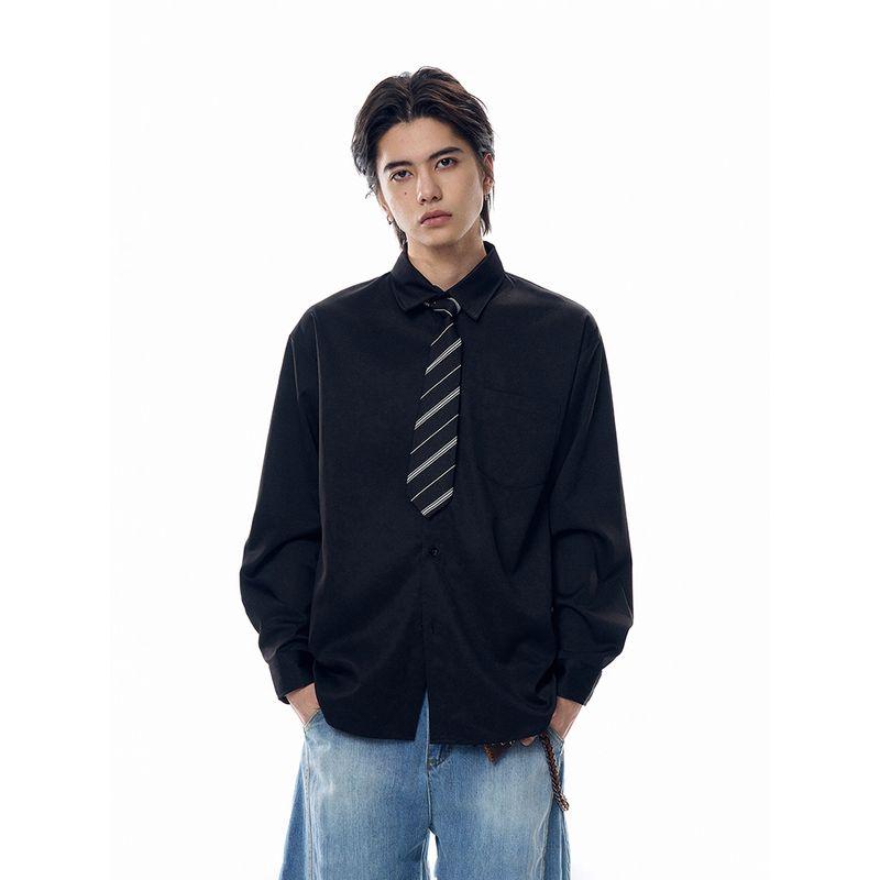 Dream Made American-Style Black Long-Sleeved Shirt for Men, Spring and Autumn, Minimalist and Versatile, New Casual Shirt Jacket