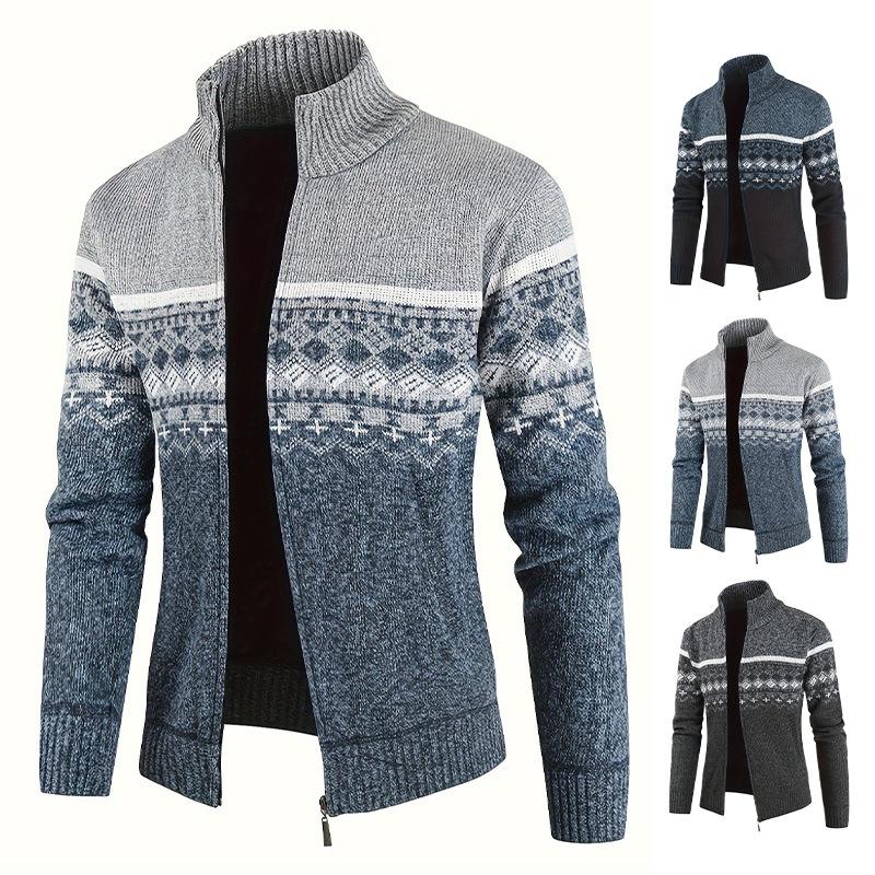 Herrenmode Rollkragen Dickes Samt Business Casual Outfit Hombre Elegante Slim Jacke Strickjacke Pullover