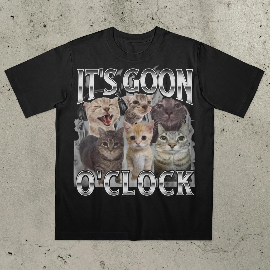 Es Goon O'Clock Katze Lustiges Katzen-T-Shirt Ironisches Katzen-Shirt Gen Z Gooning Goon Niemals GoonUngezügelt Seltsames T-Shirt Herrenbekleidung