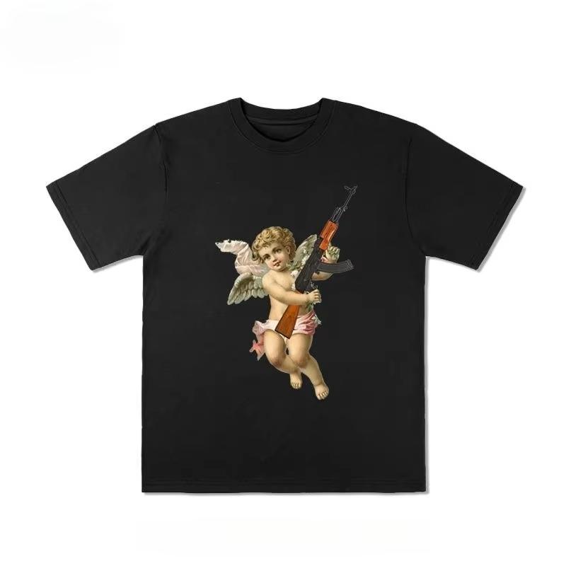 HEISSER VERKAUF Kreatives Engel-bedrucktes Baumwoll-T-Shirt für Männer und Frauen mit dem gleichen Rundhals-Baumwoll-Kurzarm-T-Shirt Lustige Kleidung