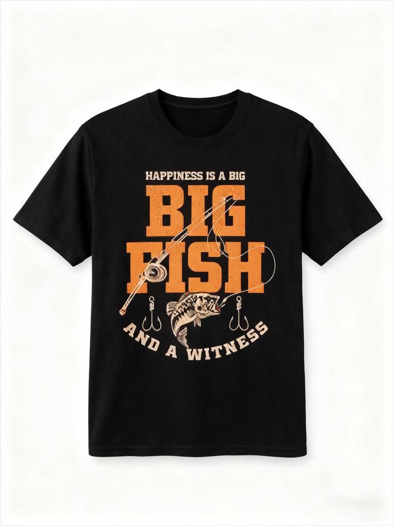 Glück ist ein großer Fisch Grafik-T-Shirt Vintage Angelzitat Druck Baumwoll-T-Shirt Outdoor Angler Top für Männer Frauen