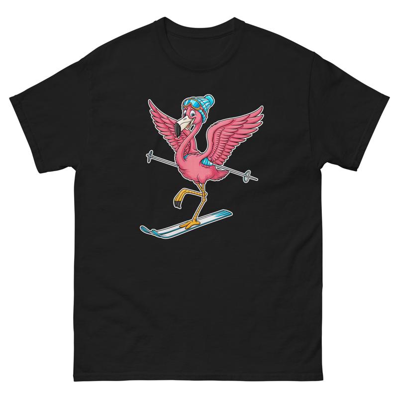Flamingo Skifahren Skifahrer Spaß Cartoon Ski T-Shirt