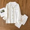 Neues Pyjama-Set für Damen, 100 % Baumwollkrepp, Blumenmuster, schlichtes, langärmeliges zweiteiliges Pyjama-Set