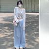 Rosa Karohose Damen Sommer Dünn Neu Hochtailliert Gerade Lässig Locker Weitbeinige Hose