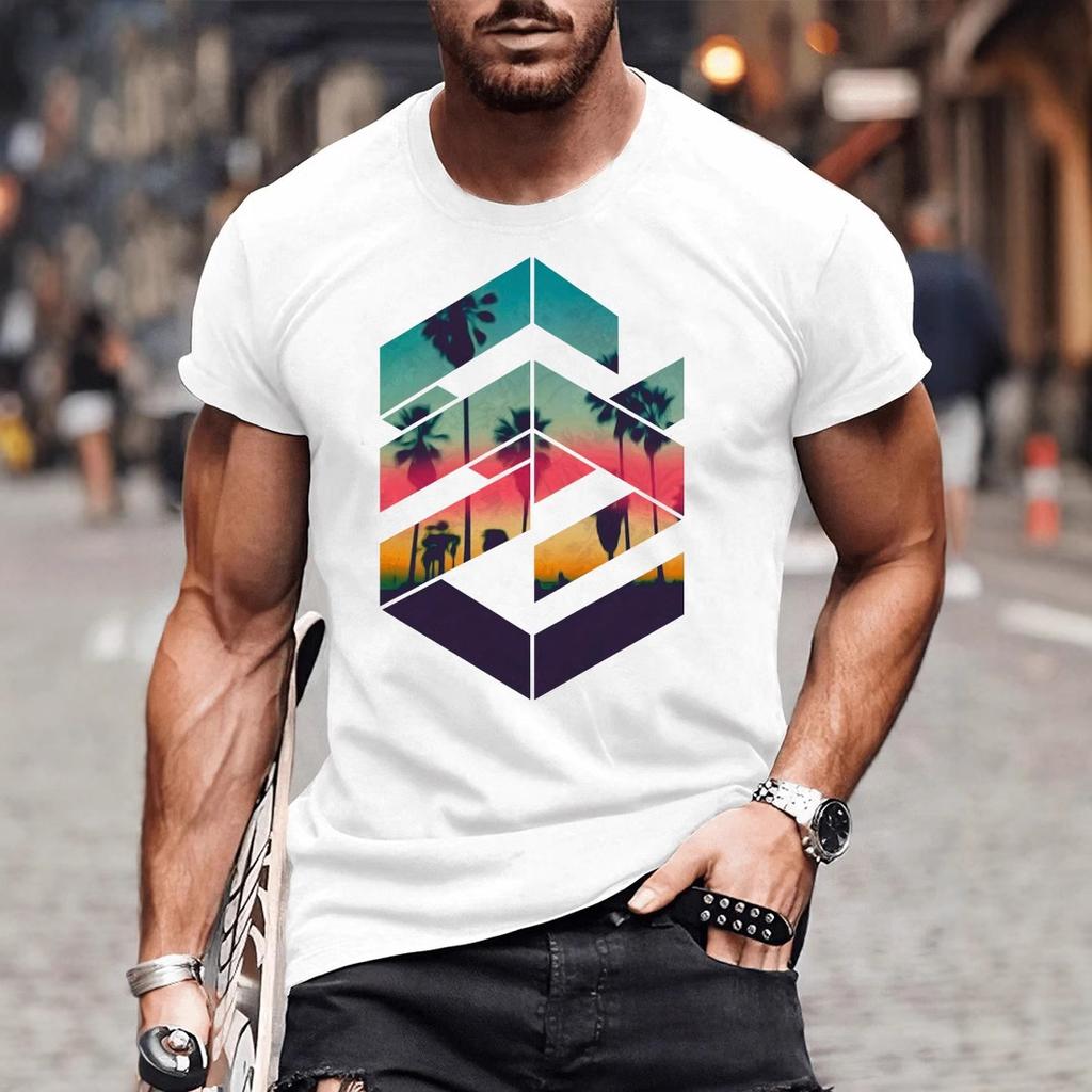 Herren Kurzarm T-Shirt mit geometrischem Landschaftsmusterdruck