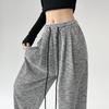 Gestreifte Hose mit weitem Bein Drapierte Hose für Damen Frühling und Herbst Neu Hochtailliert Schlankmachende Bodenlange Hose Locker Gerade Bein Freizeithose
