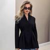 Treten Sie ein in einen scharfen, selbstbewussten Stil mit diesem schwarzen plissierten Blazer.. Mit einem schicken V-Ausschnitt und einer schmeichelhaften, figurbetonten Silhouette ist es entworfen, um Ihre professionellen und lässigen Looks aufzuwerten.. Die einzigartigen Plissee-Details verleihen einen Hauch moderner Raffinesse und machen es zu einem vielseitigen Must-Have für das Büro, Meetings oder einen schicken Abend.. Gefertigt für Komfort und Stil, lässt es sich leicht mit Hosen, Röcken oder Ihrer Lieblingsjeans kombinieren.