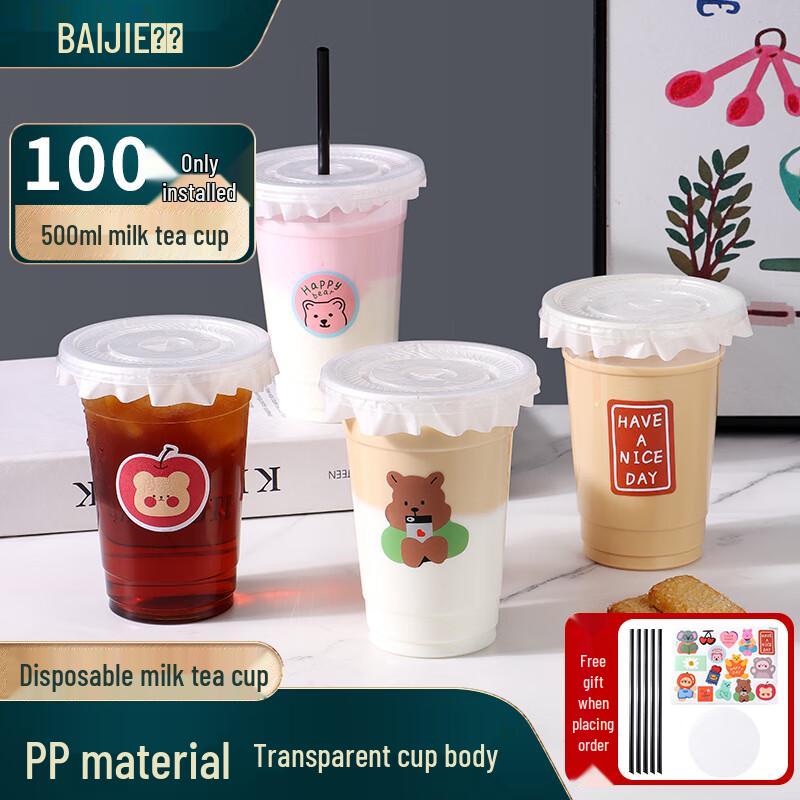 Baijie Einwegbecher für Milchshakes und Getränke mit Deckeln