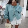 Damen-Strickjacke mit Rundhalsausschnitt, langen Ärmeln und Schnürung