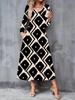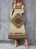 2025 Herbst und Winter Neue Damen Casual Mode Kleid 3D Retro Totem Druck Langarm V-Ausschnitt A-Linien Kleider