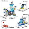 Polizeistation Stadt Bausets, 850 Teile STEM Spielzeug mit Hubschrauber Flugzeug, Boote Schiff, Wasserschutzpolizeistation, Geschenk für 6-12 Jungen