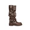Vintage Gürtelschnalle Frau Western Cowboy Stiefel Mode Slipper Niedriger Absatz Lange Stiefeletten Botas De Inverno Feminina