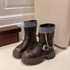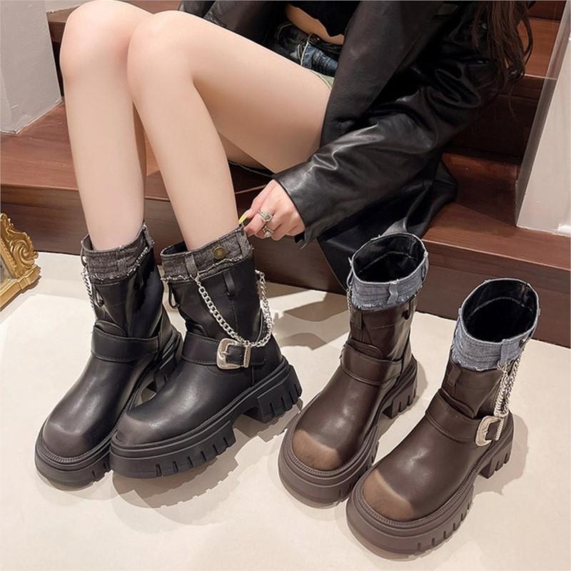 Plateau-Stiefel Damen neue Herbst- und Winterstiefel im britischen Stil mit dickem Absatz Ritter-Stiefeletten schlanke Westernstiefel C1075
