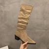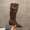 Herbst Winter Spitzzehen Dicker Absatz Damen Kniehohe Stiefel Schuhe Mode Stripper Party Damen Plissiert Schlank Ritter Lang Botas