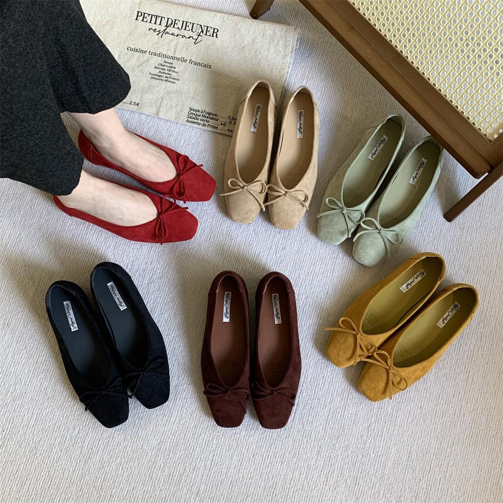 Innen aufgerautes französisches Wildleder Ballerina Abend Einzelschuhe Damenschuhe neues Frühlingsoutfit Rock rot Hochzeitsschuhe