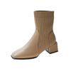 Herbst und Winter Neue Klobige Mittelabsatz Quadratische Stiefeletten für Damen Gestrickte Aprikosenfarbene Skinny Socken Einzelstiefel