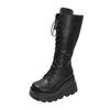 Damen Übergröße 35-43 Stiefel Neu Runde Zehenpartie Keilspitze Schnürung Dicke Sohle Reißverschluss Mid-Tube Stiefel Mädchenstil Hochwertige Schuhe