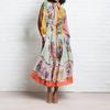 Frühlingssaison Damen Langarm Laternenärmel Print Kragen Tailliertes Kleid Knielang V-Ausschnitt Mode Y2K Kleid