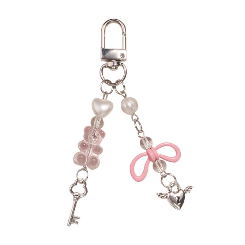 Der Herzschloss Bär Perlen Schlüsselanhänger Anhänger ist aus Legierung gefertigt. Leicht, nicht leicht zu verblassen, einfach zu tragen.