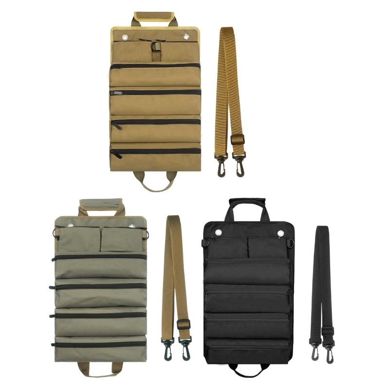 Die Werkzeugtasche und -beutel mit Reißverschluss haben 4 Reißverschlusstaschen, sodass Sie viel Platz für Werkzeuge haben. Wie Schraubendreher, Zangen, kleine Schraubenschlüssel, Scheren, Klebeband, Maßbänder, Handschuhe und Zubehör wie Schrauben in verschiedenen Größen. Diese multifunktionale Werkzeugrolle mit Reißverschluss ist praktisch, um Ihr Werkzeugset ordentlich zu halten..