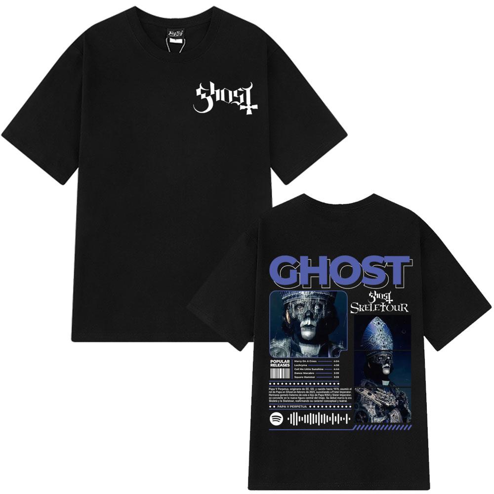 Ghost Skeletour World Tour 2025 Album Vintage Tshirt Men Women Hip-hop T-shirt Short-sleeved Gothic Punk Loose Casual T-shirts