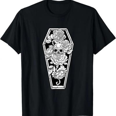 Gothic Schädel und Rose Shirt Gruseliges Halloween Sarg Okkultes T-Shirt